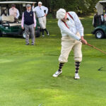 The weather… there is always mention of the weather. There had been ideal weather five days before The Cup, and ideal weather (mid 70s, sunny, clear, low humidity) predicted for several days following, but it was a fretful Secretary who dreaded the symbol for rain that settled itself ominously for Sept. 13 on his phone’s weather app. It did rain, but the dreaded precipitation stopped a good two hours before the 11 a.m. tee time and sunny skies, albeit a little steamy, prevailed. Bullet dodged. The Secretary gulped his coffee gratefully, the while thanking gods of several denominations.