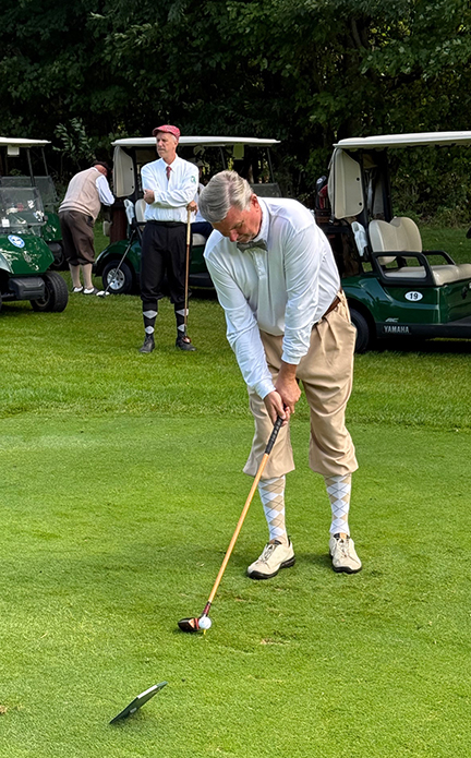 Jeff Hunt, the day’s low score winner, prepares his drive.
