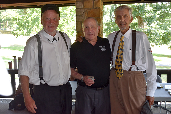Tom Johnson, host of the Foxburg Hickory Championships, recognizes Frank Rosenzweig, center, and James ‘Wally’ Koss for their long-time support of the tournament and of hickory golf.