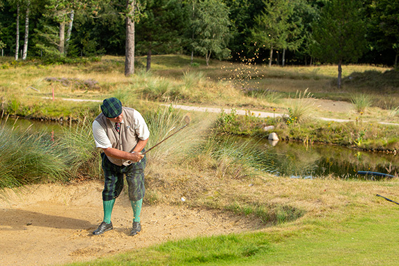 German 2025 007 ← Previous Next → Back to Article Ferd Vrijmoed (Dutch Golf Museum / Dutch Hickory Golf Society), blasts from a bunker.