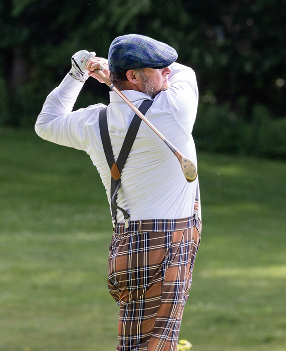 Sunday featured the 333 challenge: three centuries of Auld Gawf in three hours. Eight Auld Gawf contestants played the Lane Feathery on one-shotter holes; McIntyre Park or Braid on two-shotters; and McIntyre JH Taylor soft compression or similar on three-shotters.