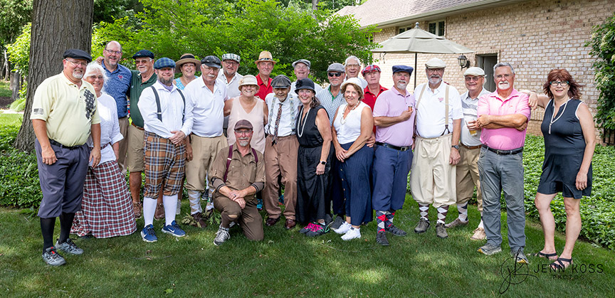 The afternoon was dedicated to legendary tales (some which were true), congrats to the champs, and unequalled comaraderie. All gathered at Jim and Judy Koss’ home for another memorable afternoon of tasty BBQ, wee nips, and a special Shirley Ernst dessert. And the grand finale was once again, priceless prizes for each player.